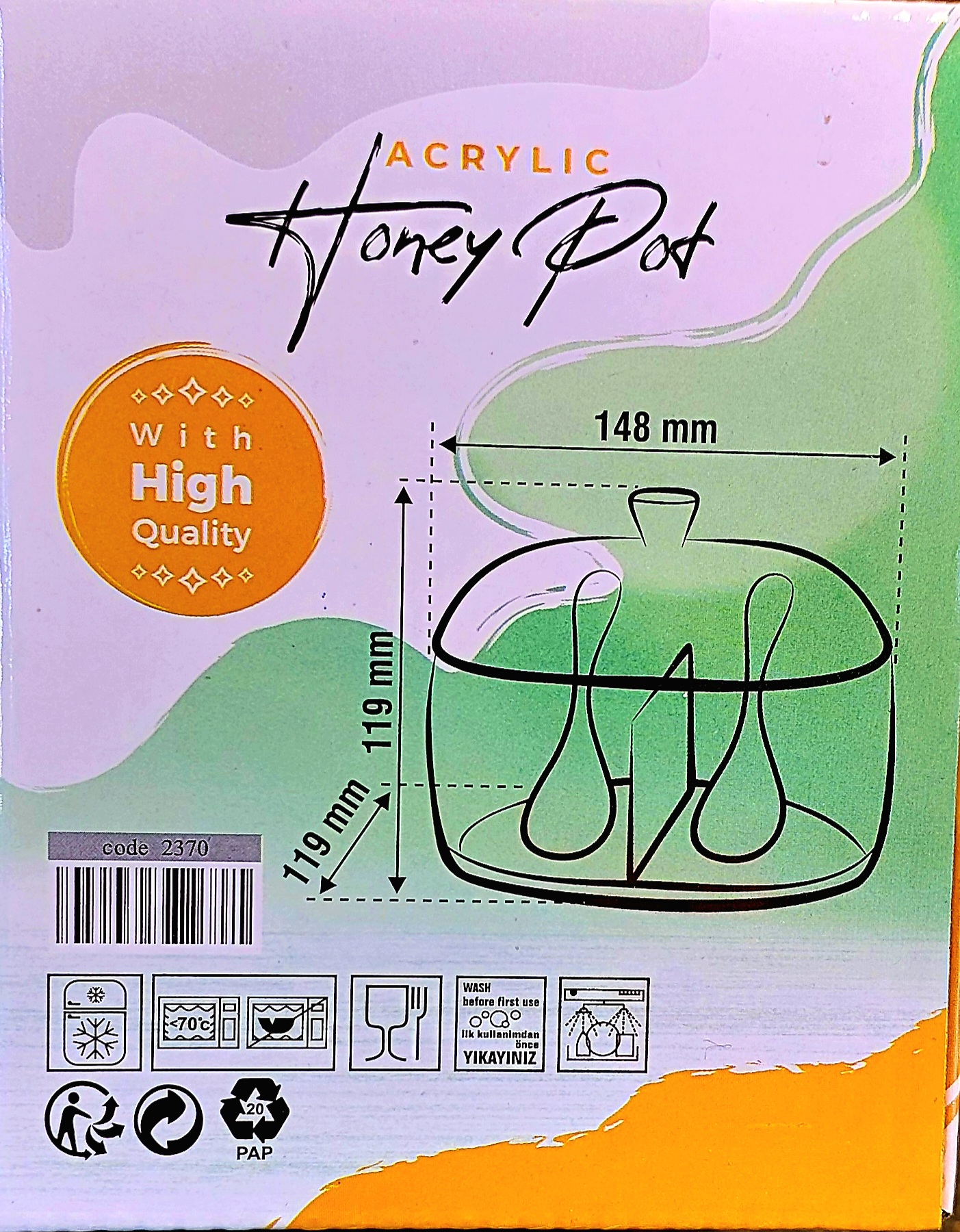 با عسل خوری دوخانه اکرولیک 2370 لذت صبحانهای دلپذیر را تجربه کنید! طراحی شفاف و مدرن این عسلخوری، شیک بودن میز صبحانه شما را تضمین میکند. دو خانه مجزا، امکان نگهداری همزمان دو نوع عسل یا مربا را فراهم میآورد. مقاومت بالا و سبکوزنی این محصول، آن را به گزینهای ایدهآل برای هر خانهای تبدیل کرده است. وقت آن رسیده که طعمی شیرین و متفاوت را به زندگی خود هدیه دهید!